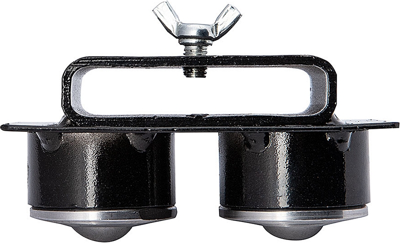 Двойной ролик для трубных опор Rotorica 18 мм (Роторика 18 мм) на скользящей площадке устанавливается с 2-х сторон V-образной опоры трубных стоек и фиксируются барашковым винтом. Направляющий ролик используется для снижения момента трения с возможностью приложения минимальных усилий при перемещении по опоре или вращении труб. Для подстройки под диаметр трубы площадка с роликами имеет возможность перемещения и фиксации в необходимом положении. Как правило, трубная опора используется совместно с резьбонарезными станками, желобонакатчиками, электрическими труборезами и т.д.